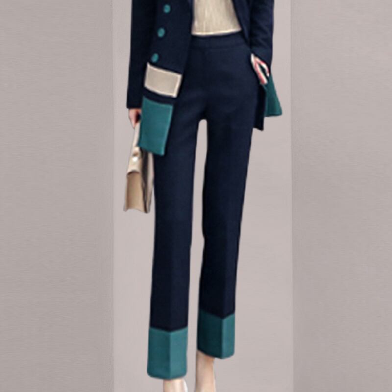 スーツ パンツスーツ ジャケット セットアップ テーラード アンクル丈 9分丈 ミディアム丈 袖あり長袖 襟付き 襟なし バイカラー MIXカラー ミックスカラー 上下セット 2点セット お得 レディース レトロ かわいい 大人可愛い お洒落 おしゃれ 大人女子 着回し デイリー 日常使い コーデ モテ デート 存在感 主役級 個性的 こなれ感 抜け感 メンズライク ボーイッシュ モード 通勤 OL オフィス 20代 30代 40代 秋 冬 S M L XL ブルーグリーン 青 緑 グリーン ダークブルー