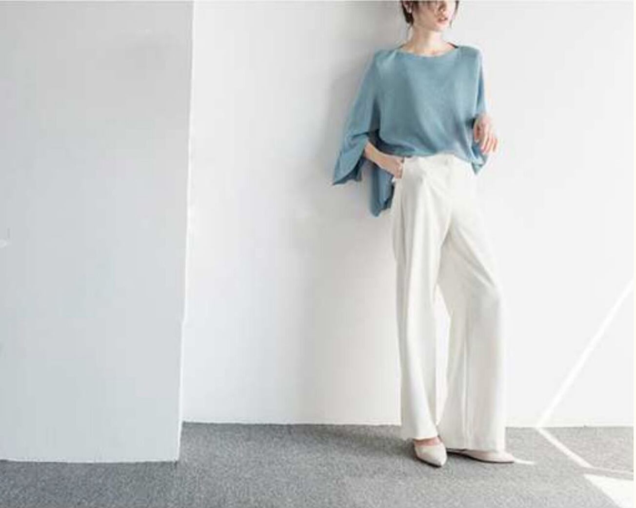 メルヘンチックなトランペットスリーブが可愛い夏のセーターです。ルーズなシルエットとゆったりめな袖が抜け感を演出し、女性らしく柔らかな雰囲気をプラスしてくれます。さらに繊細なニット地がとろみ感を醸し出し、上品で存在感ある一枚に仕上がっています。普段使いはもちろん、通勤やデートにもピッタリな万能トップスです。カラーバリエーションも豊富で、お気に入りの1枚を見つけてみてください。
