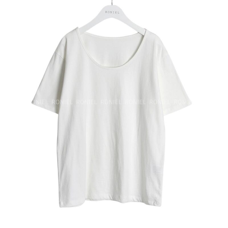 一枚あると便利な定番スタイルのUネックTシャツ。