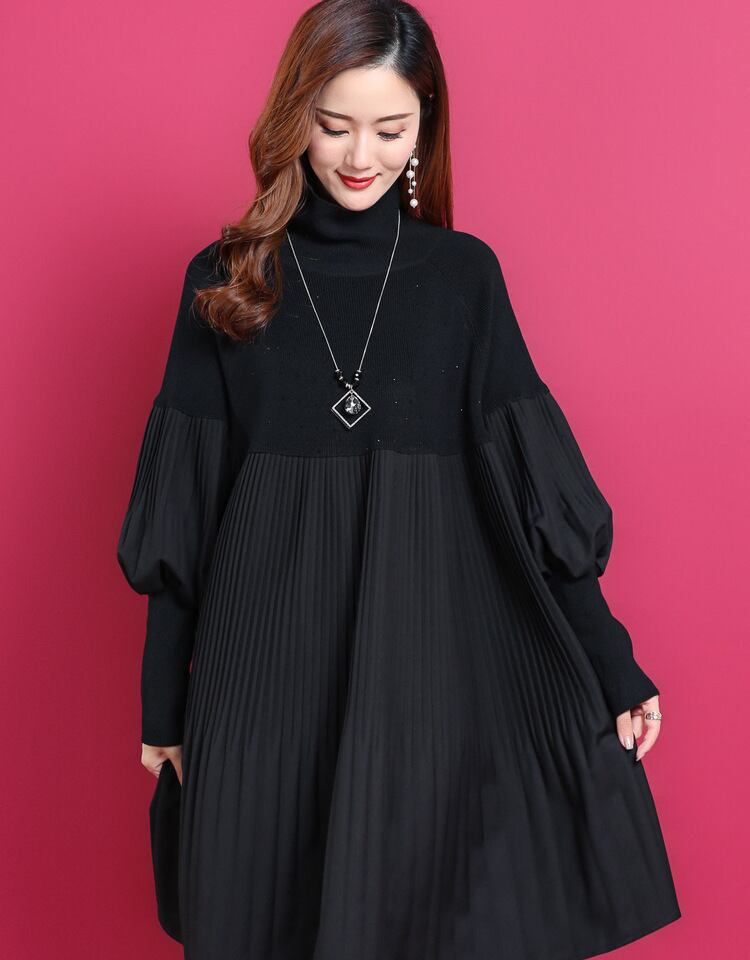 トップス プルオーバー チュニック ニット プリーツスカート 袖あり 長袖 ランタンスリーブ タートルネック ゆったり プリーツ 異素材MIX かわいい 大人可愛い 大人 おしゃれ お洒落 大人女子 こなれ感 キュート ガーリー 個性的 無地 10代 20代 30代 通勤 学生 通学 デート お出かけ 女子会 休日 イベント 旅行 ホテル ガーデン レストラン ショッピング 韓国 韓国系 オルチャン ファッション サイズ S M L XL 2XL 3XL 4XL ブラック ブラウン