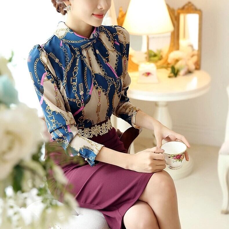 トップス ブラウス 長袖 ラウンドネック 細身 ストレート サテン かわいい 大人可愛い きれいめ シンプル カジュアル 大人 上品 おしゃれ レトロ アジアン 大人女子 キュート ガーリー セクシー エレガント 主役級 フォーマル チェーン柄 春 秋 謝恩会 20代 30代 40代 レディース OL 通勤 デート お出かけ 女子会 パーティー イベント ホテル レストラン ショッピング 普段使い 韓国系 ファッション コーデ スタイル モテ トレンド 流行 インスタ映え S M L XL 2XL ブルー