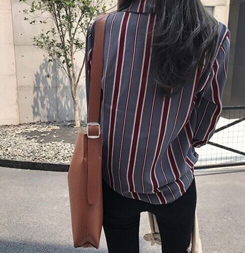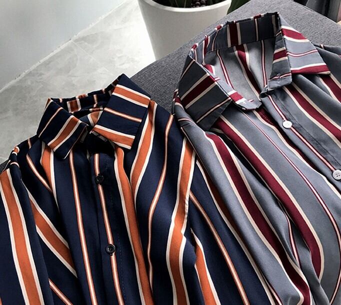 トップス シャツ ストライプ ブラウス クラシック 羽織 長袖 襟付き 前開き かわいい 大人可愛い きれいめ シンプル カジュアル おしゃれ かっこいい レトロ こなれ感 ラフ メンズライク マニッシュ 個性的 クール ベーシック 主役級 存在感 プレッピー 春 秋 冬 レディース ママ OL 通勤 学生 通学 お出かけ 休日 ショッピング 着回し 普段使い 重ね着 定番 レイヤード M L XL 2XL 3XL 4XL 灰色 グレー オレンジ ワインレッド ネイビー 大人カラー 秋冬カラー