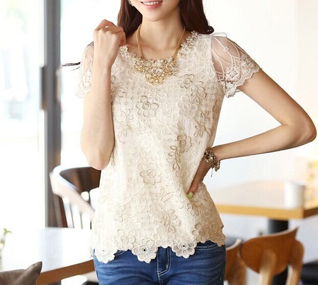 繊細なレースとパール飾りが豪華で女性らしいトップス♪