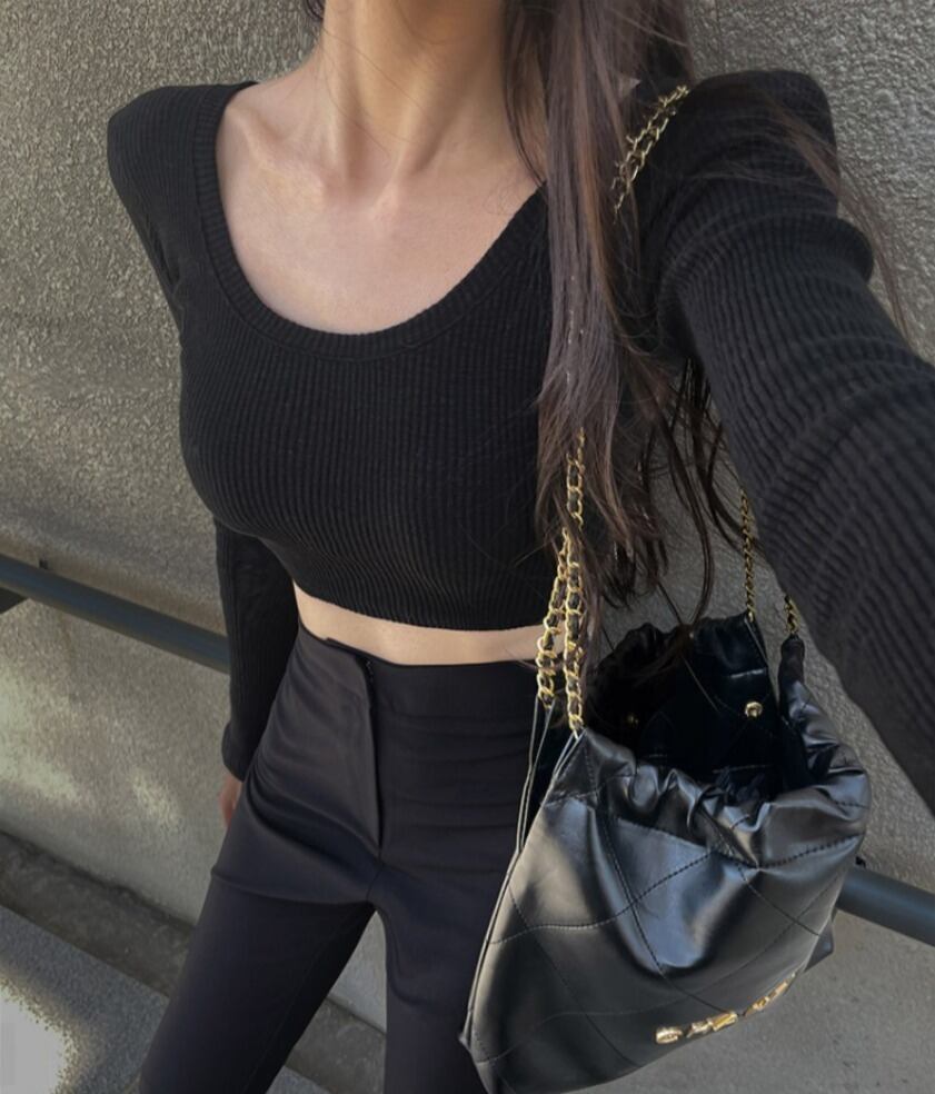 クールでセクシーな印象のニットトップスです。落ち着いたモノトーンカラーでコーデしやすく様々なシーンで活躍する大人な一着です。着心地もよく春や夏に着まわしたい優秀なトップスです。