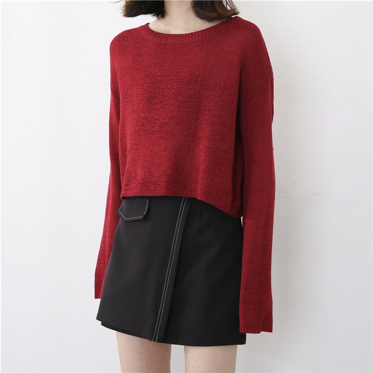 トップス セーター ニット ニットセーター ショート丈 袖あり 長袖 ボリューム袖 ランタンスリーブ 襟なし ゆったり 薄手 かわいい 大人可愛い シンプル カジュアル 大人 上品 おしゃれ お洒落 大人女子 こなれ感 ラブリー キュート ガーリー 主役級 とろみ感 無地 春 秋 10代 20代 レディース 女性用 ママ 通勤 学生 通学 デート お出かけ 女子会 イベント 旅行 ホテル ガーデン レストラン ショッピング 韓国 韓国系 ワンサイズ