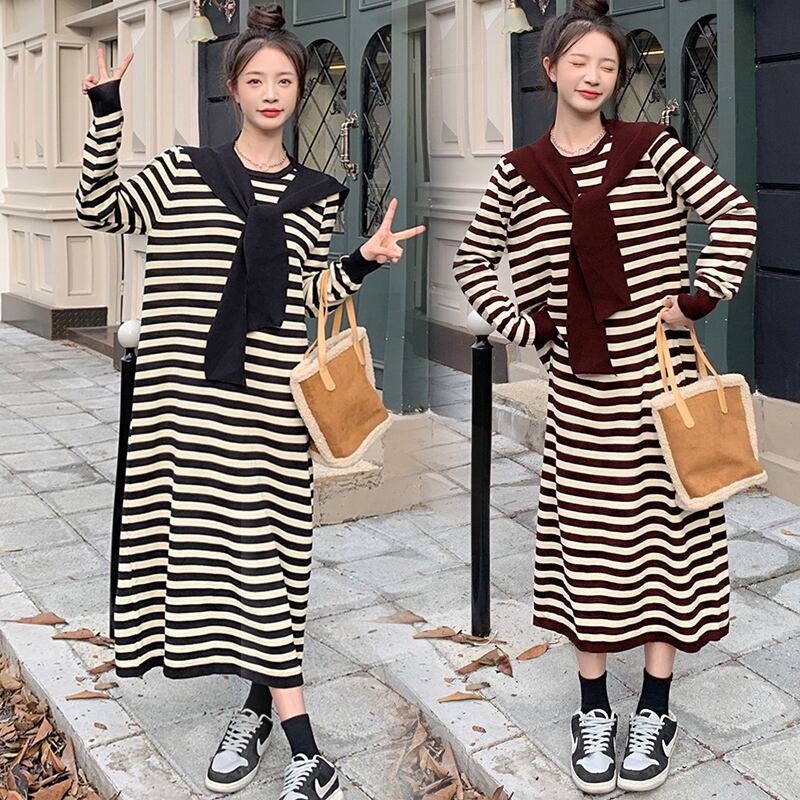スカート ワンピース ルームウェア ロングスカート ロング ロング丈 袖あり 長袖 ラウンドネック スリム ストレート Iライン ポリエステル かわいい 大人可愛い きれいめ カジュアル 大人女子 ラブリー キュート ガーリー とろみ感 ボーダー 春 秋 冬 10代 20代 30代 40代 レディース ママ マタニティ デート お出かけ 女子会 休日 着回し 楽ちん 体系カバー 美脚 脚長 M L XL ゆったり ゆる 黒 茶色 ブラウン 大人カラー モノトーン 秋カラー