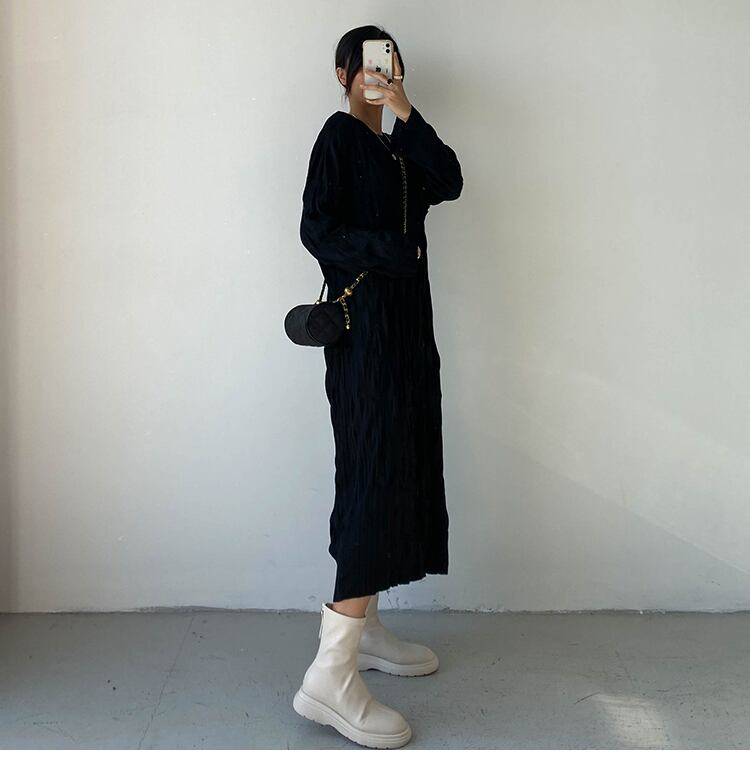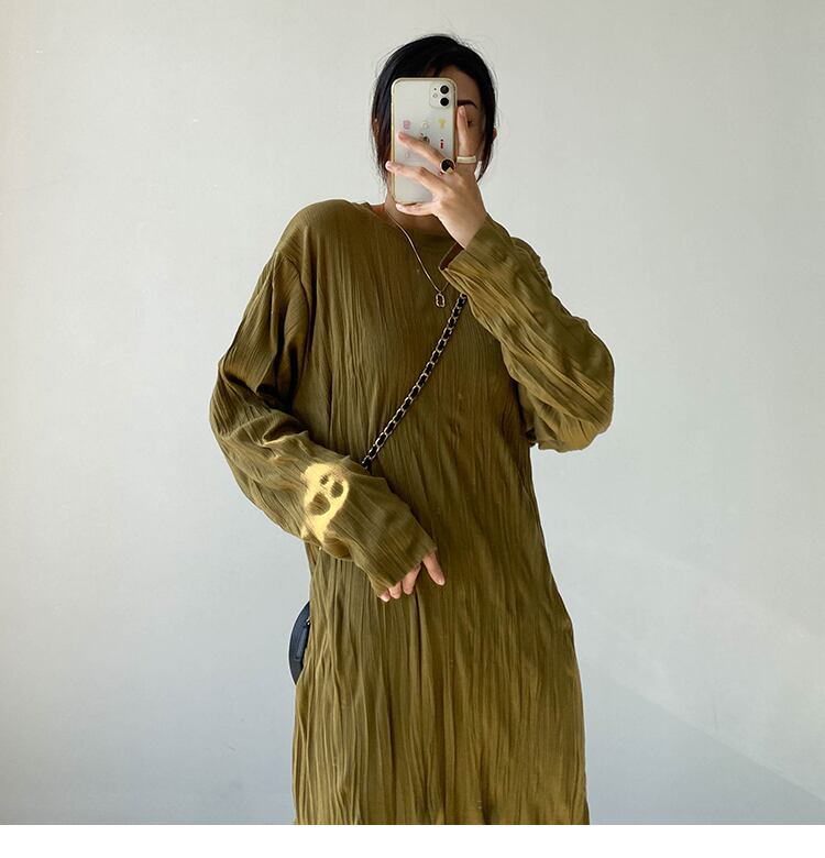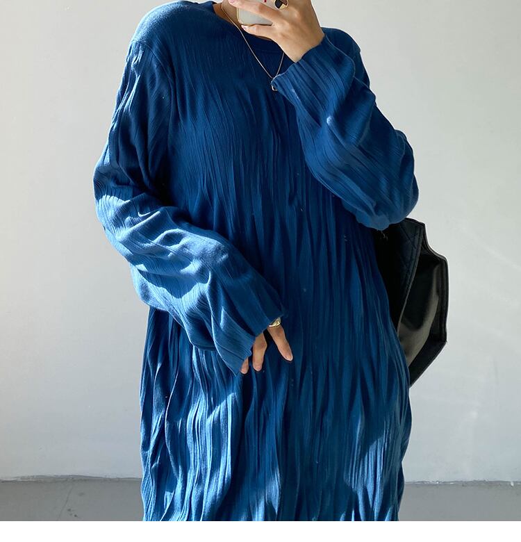 ワンピース ワンピドレス 長袖ワンピース ロングワンピース 膝下 ロング丈 アンクル丈 袖あり 長袖 ラウンドネック 襟なし ストレート プリーツ 伸縮性 大人可愛い 大人 エレガント シンプル カジュアル おしゃれ お洒落 レトロ こなれ感 ラフ ルーズ とろみ感 抜け感 無地 春 夏 秋 通勤 通学 デート お出かけ 公園デビュー 女子会 休日 リゾート レストラン 旅行 ガーデン コーデ スタイル 楽ちん 体系カバー S M L XL 黒 ブラック 青 ブルー 緑 グリーン 大人カラー