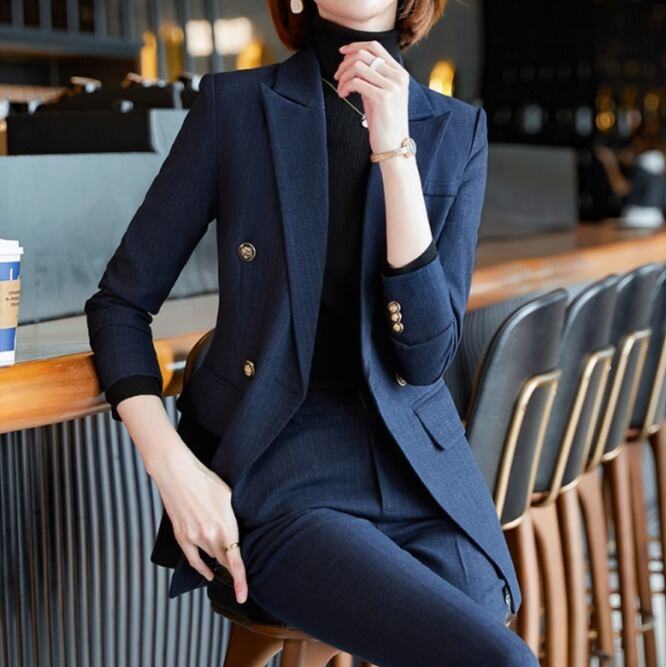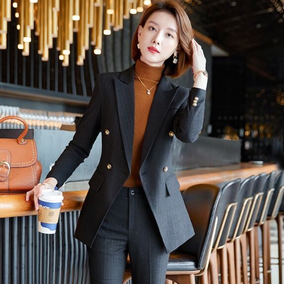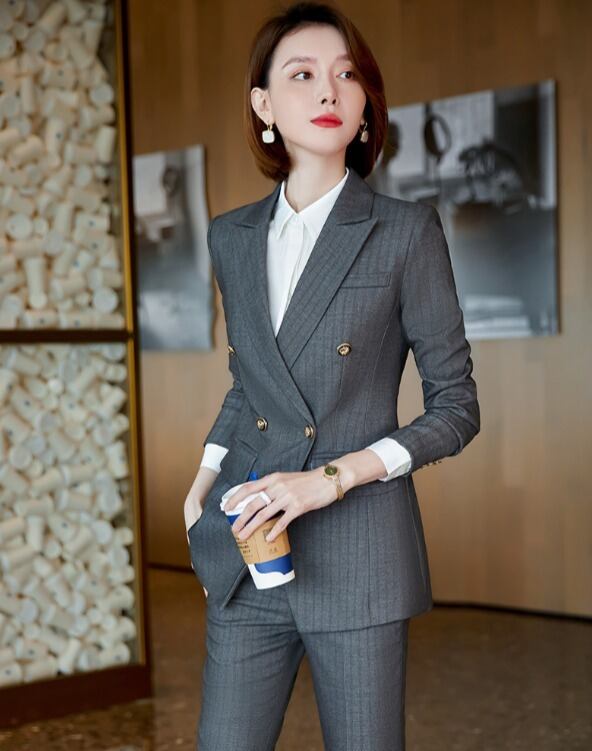 さり気ないピンストライプが上品なフォーマルスタイルに仕上げてくれるツーピーススーツ。マニッシュなデザインが、キャリアウーマンな雰囲気を漂わせてくれます。ゴールドのボタンがハイエンドさをプラスし、ワンランク上の洗練されたスタイルで、あらゆる場面にふさわしいスタイルに。絶妙な丈感のパンツが程よいカジュアルさを感じさせてくれます。