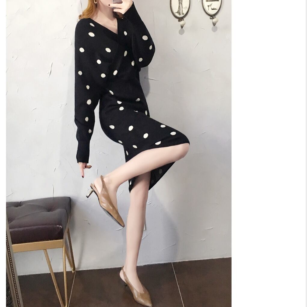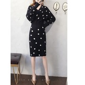 ワンピース ニットワンピース ひざ丈 袖あり ノースリーブ Vネック 襟なし ノーカラー スリム ウエストマーク バックシャン バックコンシャス ウエストゴム ニット カジュアル おしゃれ お洒落 レトロ こなれ感 ラフ ラブリー キュート ガーリー 個性的 存在感 抜け感 ドット柄 水玉 春 秋 冬 バレンタイン 10代 20代 30代 レディース 女性用 女の子 OL デート お出かけ 休日 旅行 ショッピング 合コン 普段使い 楽ちん S M XL 2XL 大きいサイズ ブラック モノトーン
