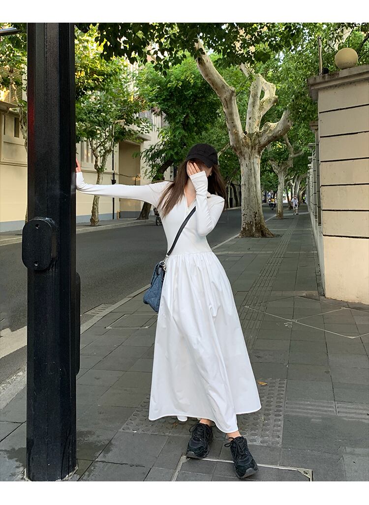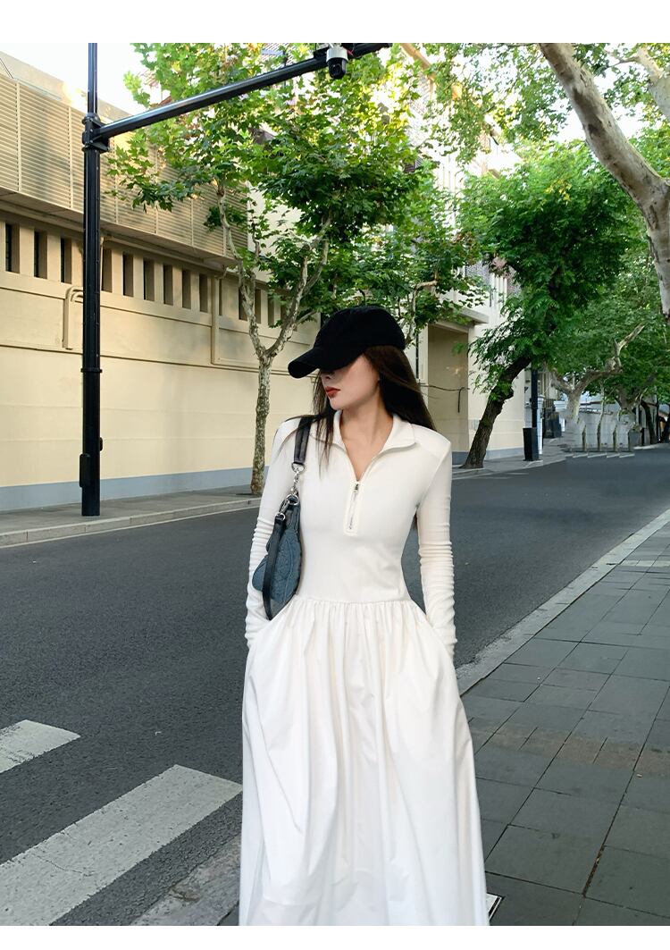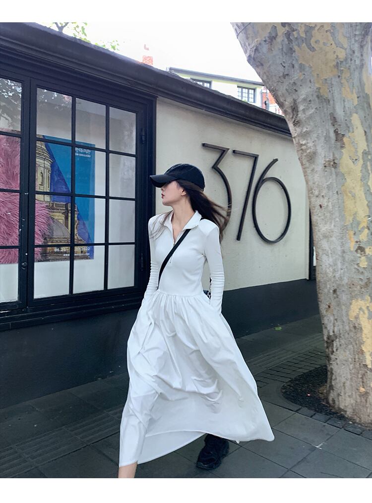 スカート ワンピース シャツワンピース フレアワンピース ロング ロング丈 マキシ マキシ丈 袖あり 長袖 フレア セミフレア 細身 スマート ウエストマーク ファスナー 綿 大人可愛い シンプル カジュアル 大人 上品 おしゃれ お洒落 かっこいい ボーイッシュ スポーティー ガーリー クール モード系 エレガント モダン 主役級 無地 春 夏 秋 冬 オールシーズン 10代 20代 30代 レディース デート お出かけ 女子会 休日 イベント レストラン ショッピング 普段使い 体系カバー 美脚