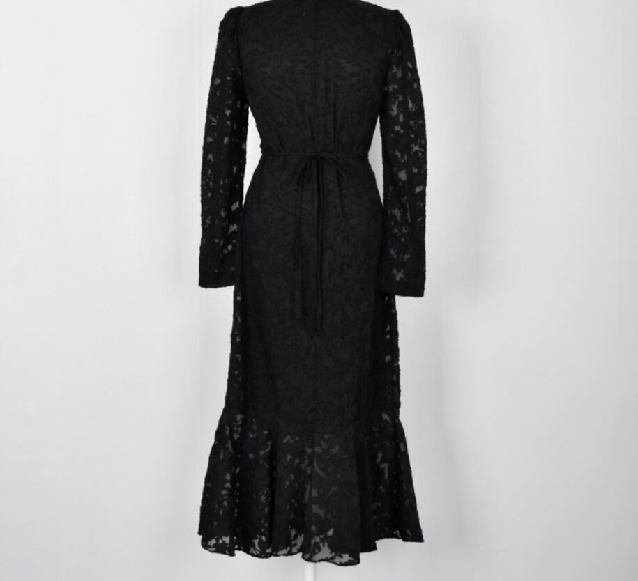 ワンピース ワンピドレス ロング ロング丈 袖あり 長袖 パフスリーブ 萌袖 Vネック 襟なし ペプラム レース ウエストマーク 切り替えデザイン ハイウエスト 透け感 薄手 かわいい 大人可愛い きれいめ シンプル カジュアル 大人 上品 おしゃれ お洒落 大人可愛い 大人女子 こなれ感 ラフ ルーズ 個性的 エレガント 主役級 存在感 とろみ感 抜け感 柄 花柄 小花柄 フラワー 春 誕生日 10代 20代 30代 40代 50代 60代 レディース 女性用 ママ マタニティ オフィス ビジネス