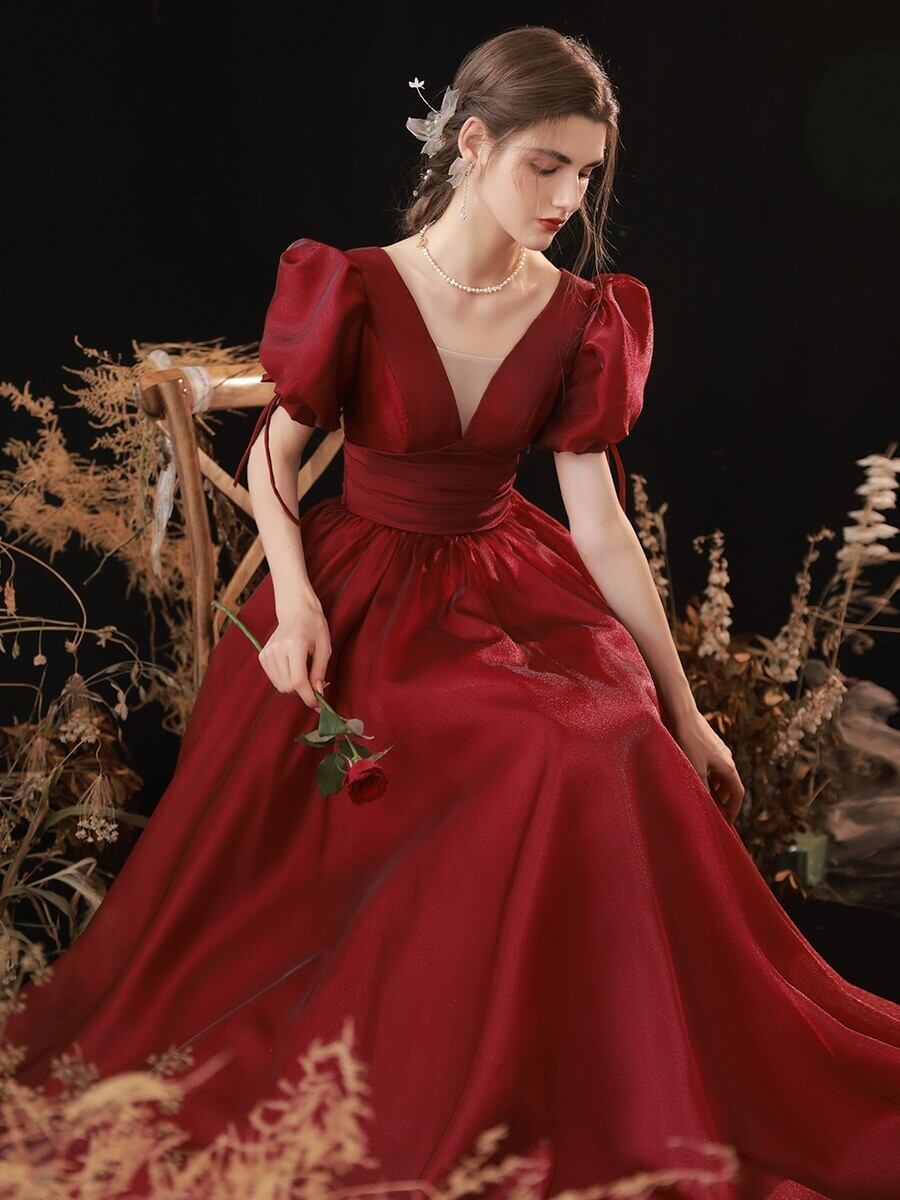ドレス ワンピース ロング ロング丈 Aライン フレア パフスリーブ ボリューム袖 お嬢様 プリンセス プリンセススタイル 無地 シンプル リボン レディース 上品 きれいめ かわいい 大人可愛い お洒落 おしゃれ 大人女子 エレガント 大きめサイズ 華やか ゴージャス クラシック 結婚式ドレス 二次会ドレス 披露宴ドレス ステージドレス フォーマルドレス パーティー パーティ 20代 30代 40代 オールシーズン シーズンレス 春 夏 秋 冬 XS S M L XL 2XL 3XL ワインレッド 赤