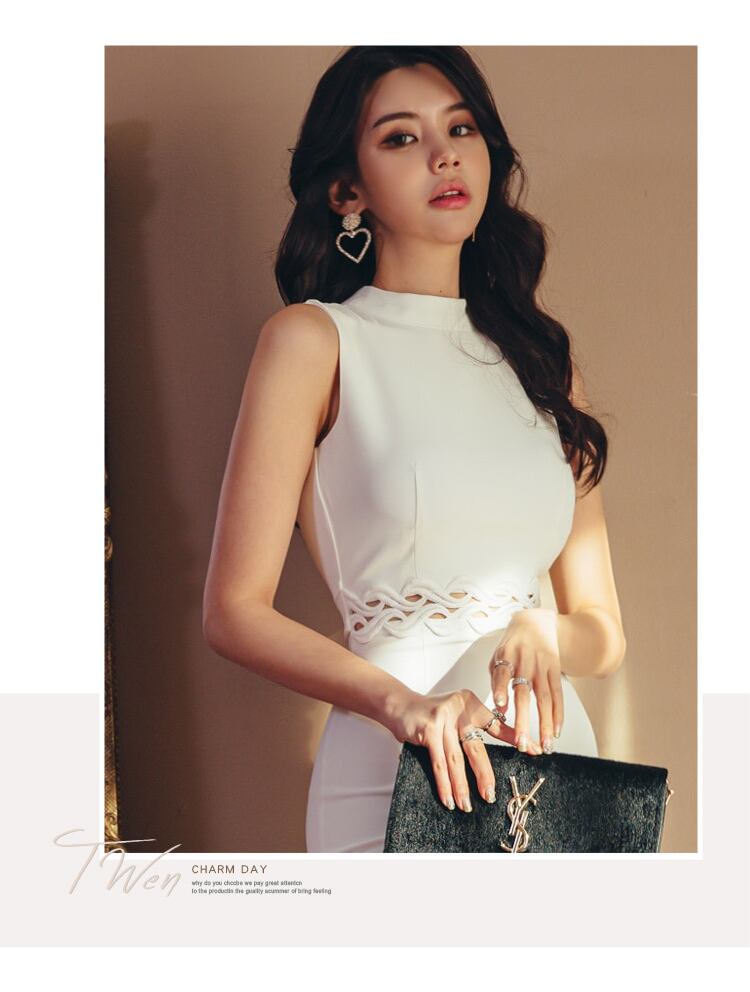 ワンピース ワンピ ミディアム丈 半端丈 膝丈 ひざ丈 タイト 細身 ハイウエスト バックスリット スリット 細身シルエット 脚長 美脚 袖なし ノースリーブ ハイネック 無地 シンプル レディース 上品 きれいめ 華やか ゴージャス クール かっこいい モード系 かわいい 大人可愛い お洒落 おしゃれ 大人女子 エレガント コーデ モテ デート フォーマル クラシック 結婚式 二次会 披露宴 フォーマル レス パーティー パーティ 通勤 20代 30代 40代 春 夏 秋 S M L XL 白 ホワイト