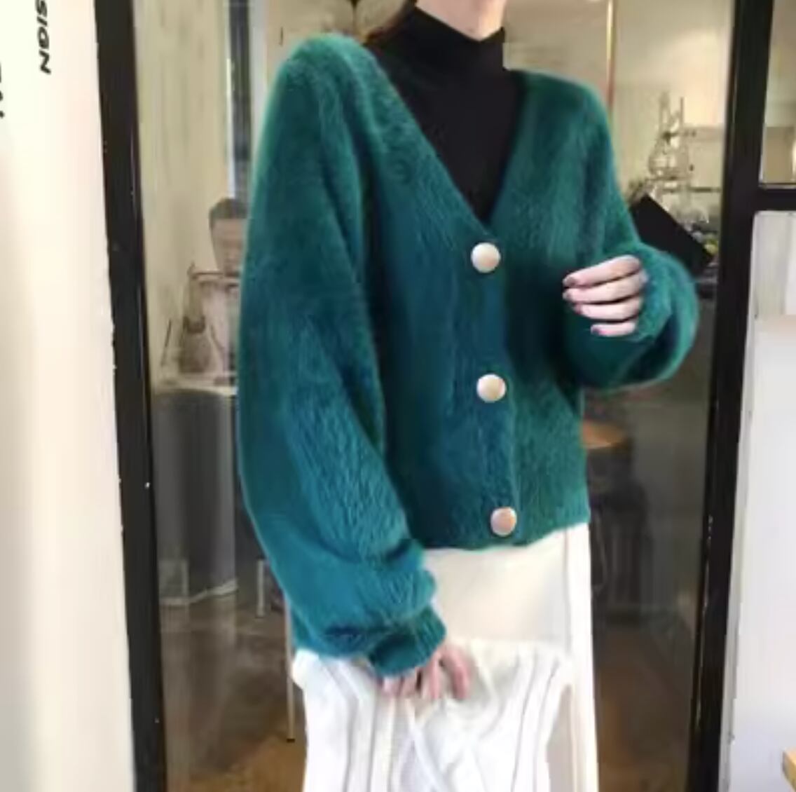 ルーズなシルエットのVネックカーディガン。幅広い年齢層にお召しいただけ、シンプルなデザインなので、カジュアルからきれいめまで幅広くコーディネートでき、着回しが効く一枚です。