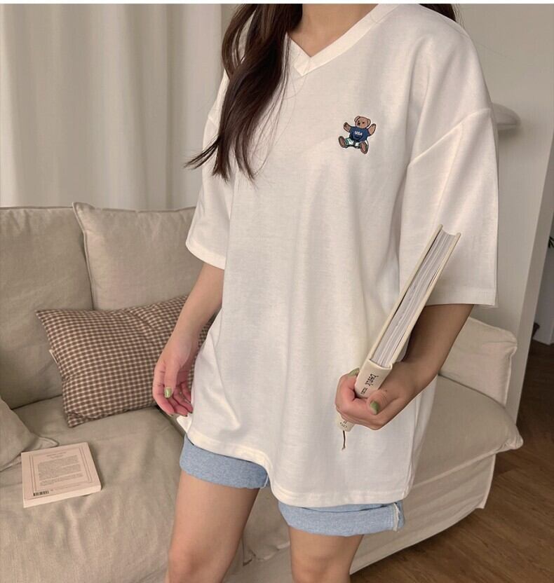 トップス Tシャツ 半袖 ドロップショルダー Vネック オーバーサイズ コットン シンプル カジュアル ラフ ボーイッシュ ルーズ ペア 男女兼用 学生 通学 デート お出かけ 女子会 休日 アウトドア 海 プール 着回し 普段使い お揃い フリーサイズホワイト 黒 メランジグレー ネイビー