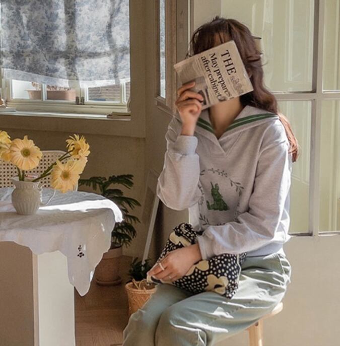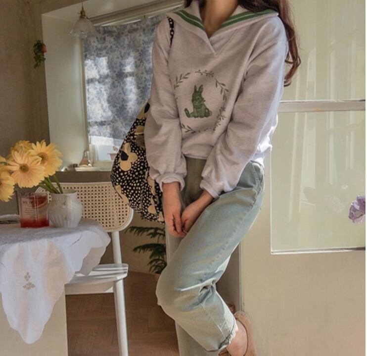 カントリーデザインのウサギプリントがかわいいフーディー。ボリューム袖とVネックが上品な印象に。カジュアルにもきれいめにも着こなせる、着回し力抜群のアイテムです。普段着にはもちろん、デートやお出かけにもぴったりです。