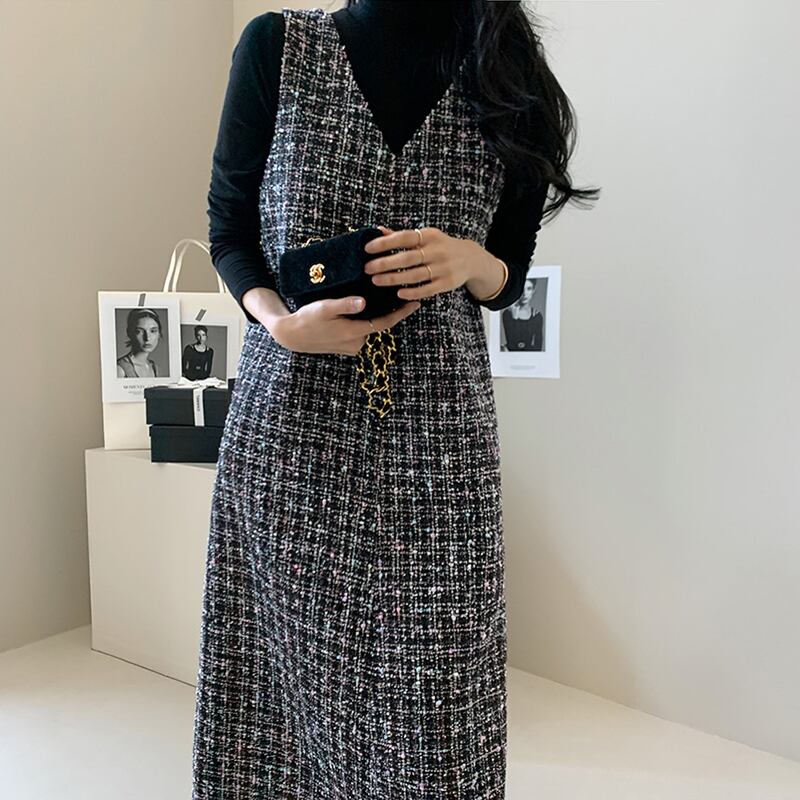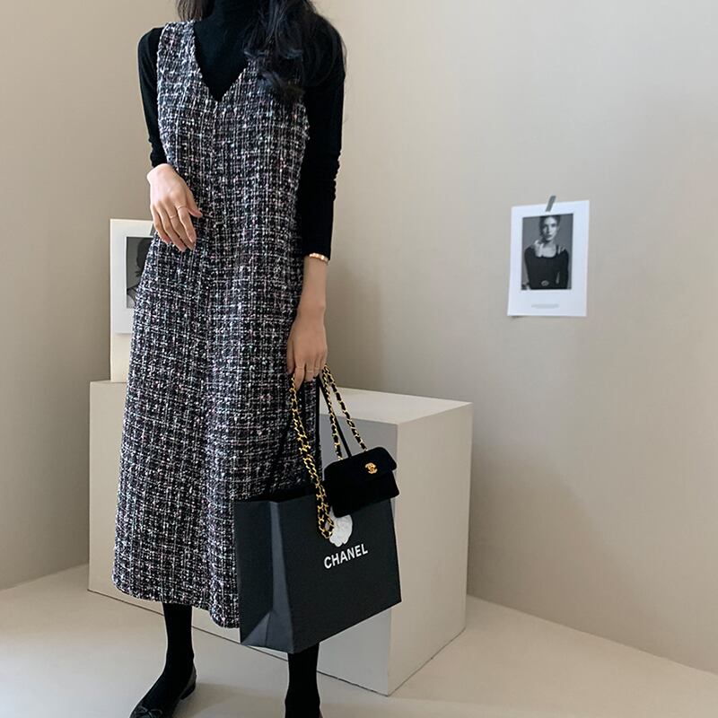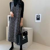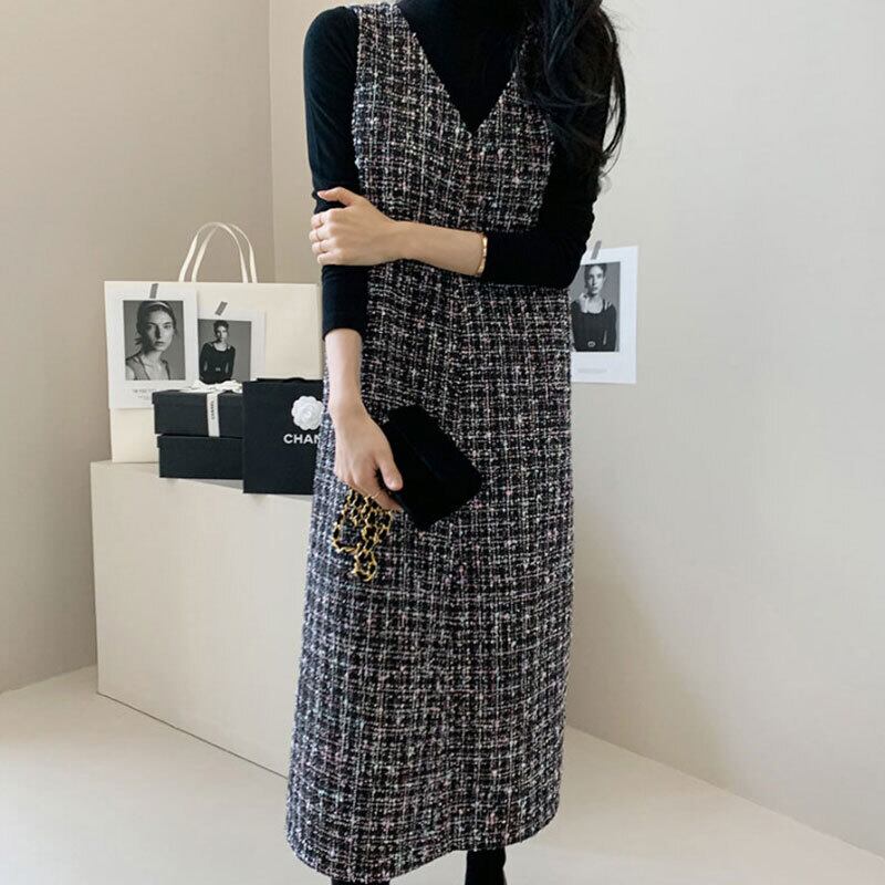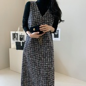 ワンピース デート ミモレ ミモレ丈 ロング ロング丈 袖なし ノースリーブ Vネック 襟なし ノーカラー ストレート Iライン コンサバ ツイード きれいめ カジュアル おしゃれ お洒落 レトロ ラフ クール ラグジュアリー フォーマル クラシカル チェック柄 春 秋 二次会 会議 プレゼン 20代 30代 40代 50代 60代 レディース ビジネス OL 通勤 お出かけ 休日 パーティー レストラン ショッピング 特別 合コン 婚活 着回し 普段使い 重ね着 レイヤード 体型カバー 清楚 ブラック