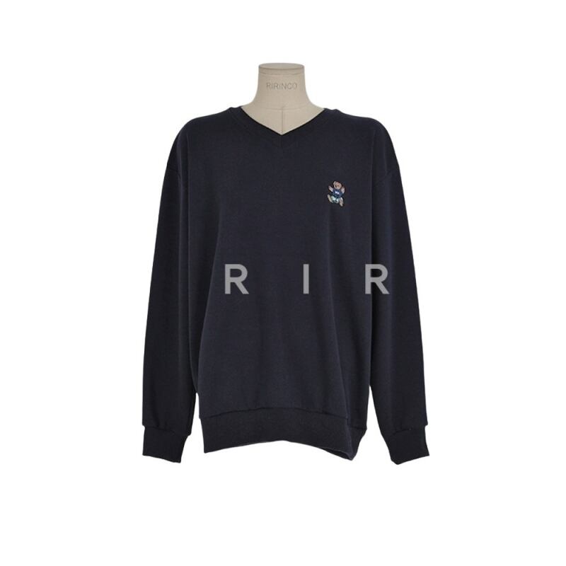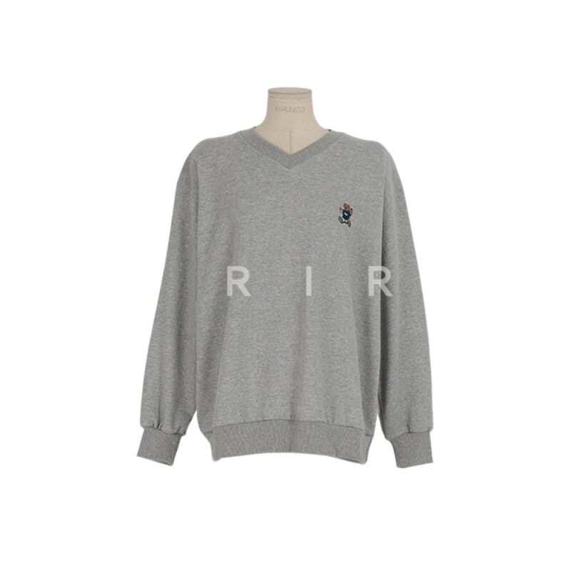 Vネックで首元がスッキリ見えるので、スタイルアップ効果も抜群です。シンプルなデザインに胸元のクマのワッペンがポイント!どんなコーデにも合わせやすく、普段使いからデートまで幅広いシーンで活躍します。
