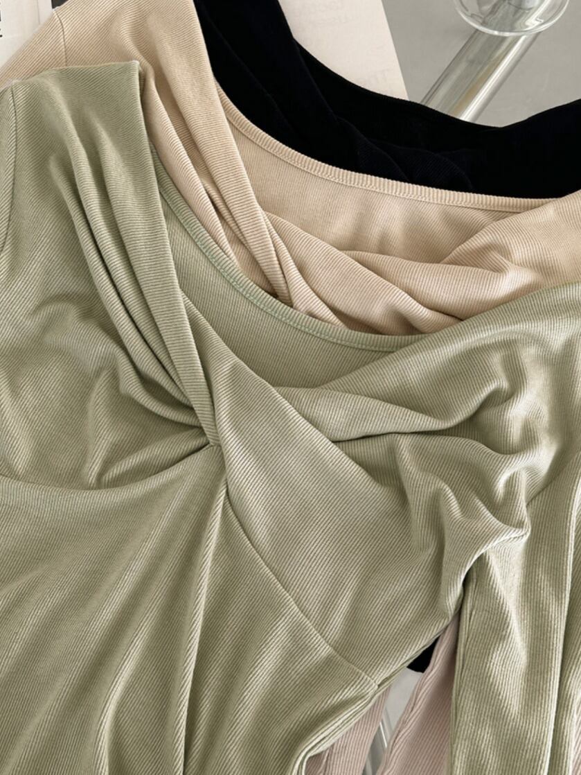 レトロな雰囲気で女性らしい薄手のニットトップスです。シンプルだけど胸元のデザインがアクセントになりお洒落な印象に。シックなカラー展開で重ね着はもちろん一枚でも着られる嬉しい一着です。