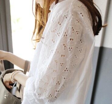 女性らしいレースがポイントの、万能な白シャツ♪