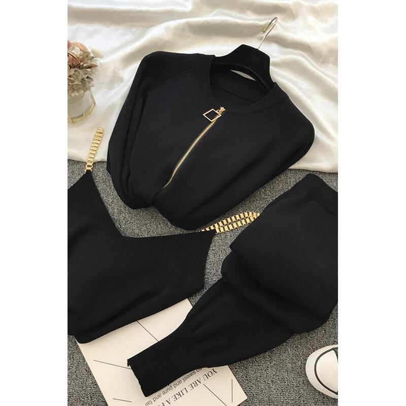 ゴールドのチェーンデザインが個性的なスリーピースのセットアップ。