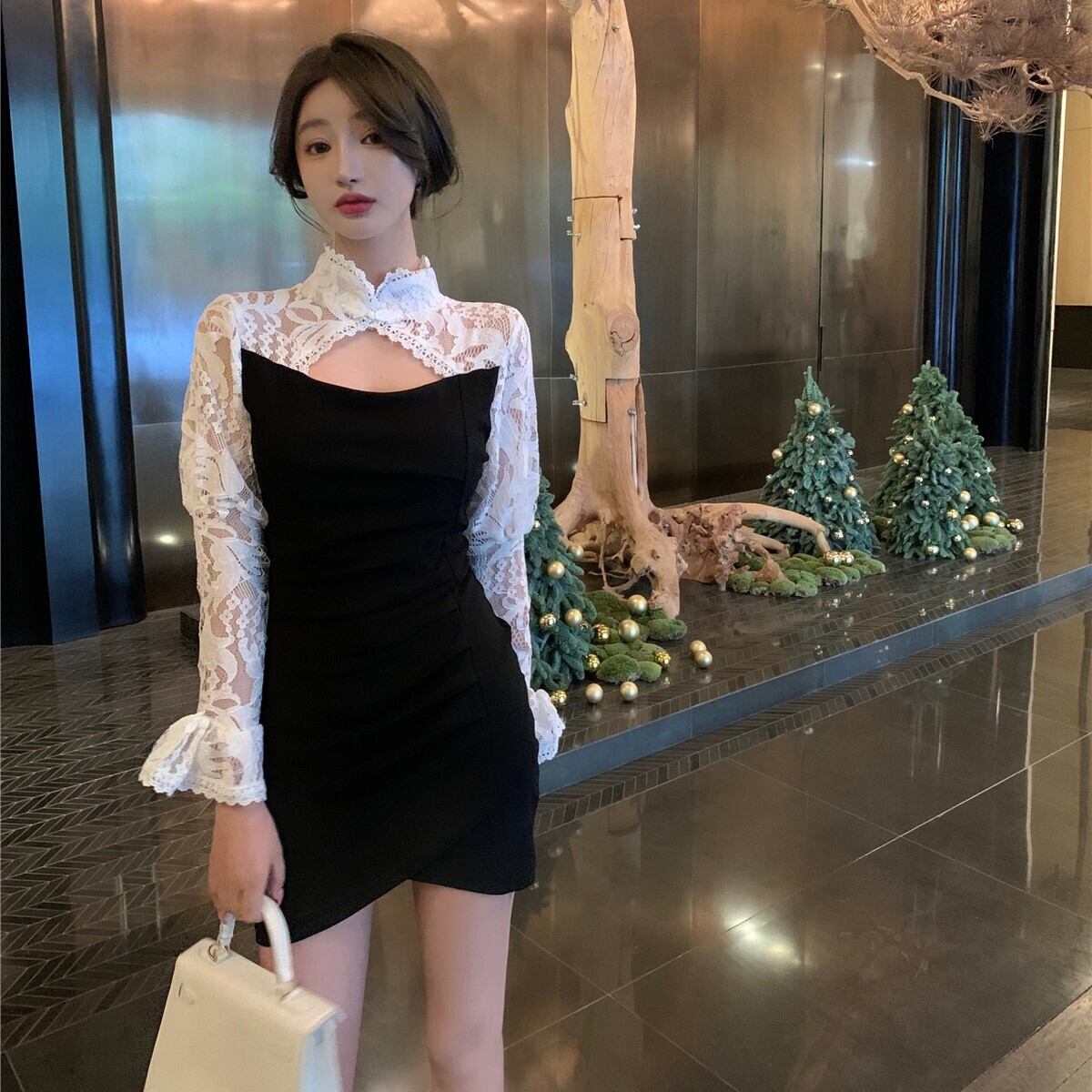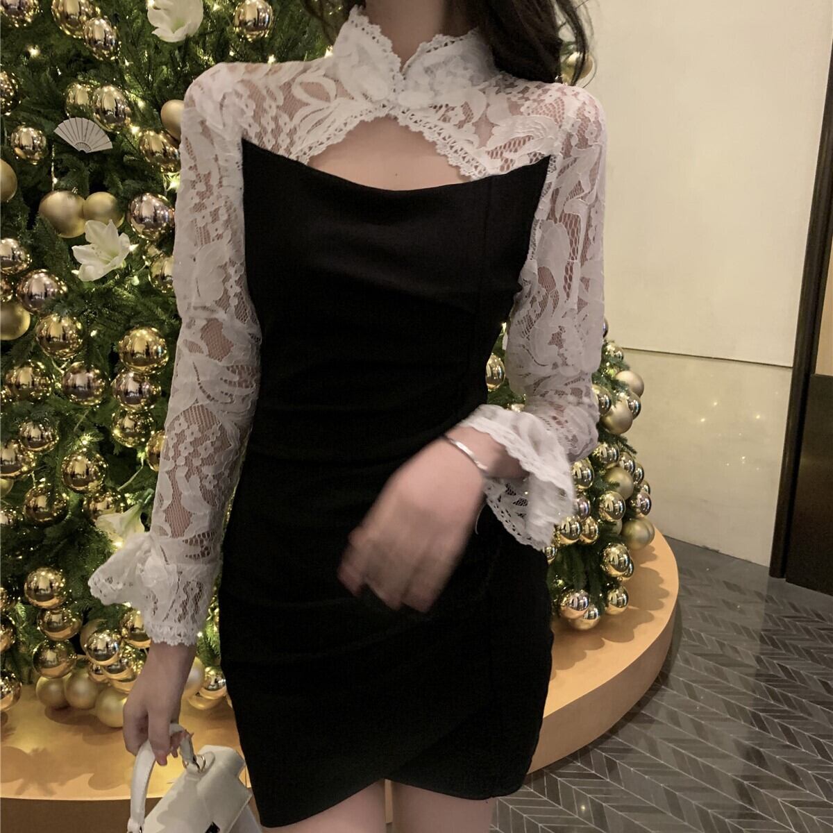 ドレス パーティードレス チャイナドレス ミニ丈 長袖 スタンドカラー Iライン 切り替えデザイン レース ハイウエスト 透け感 かわいい 大人可愛い きれいめ シンプル 大人 上品 おしゃれ アジアン 大人女子 ラブリー キュート ガーリー セクシー エレガント 主役級 華やか 清楚 チャイナ風 10代 20代 30代 レディース デート パーティー イベント ホテル ガーデン レストラン 韓国系 ファッション コーデ スタイル 格上げ トレンド 流行 夏 秋 結婚式 2次会 お呼ばれ S M L XL