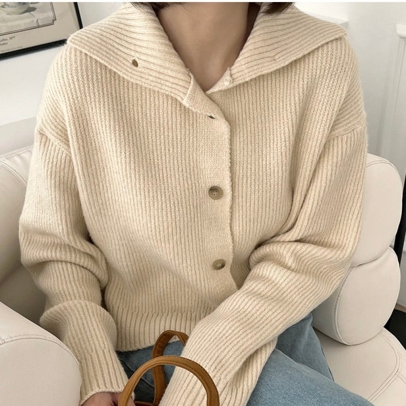 トレンド感たっぷりなショート丈のセーラーカラーカーディガン。