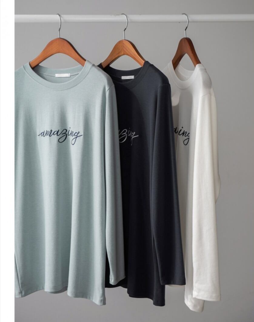 おしゃれで可愛いプリント柄Tシャツ、長袖で季節感もばっちり。シンプルなボトムスと合わせても、どこかこなれ感のあるコーディネートが完成します。ママさん、OLさん、女子会やお泊まり、旅行など、どんなシチュエーションでも使える着回し力抜群!