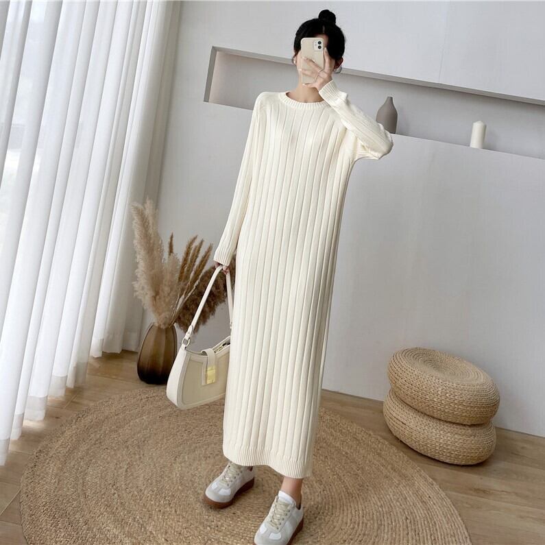 ワンピース ニットスカート ロング丈 長袖 ラウンドネック ストレート 伸縮性 ニット かわいい 大人可愛い きれいめ シンプル カジュアル 大人 おしゃれ 大人女子 ラフ ラブリー キュート ガーリー とろみ感 無地 秋 冬 10代 20代 30代 40代 レディース マタニティ 学生 通学 デート お出かけ 女子会 着回し 普段使い 韓国系 ファッション コーデ スタイル 楽ちん 暖かい モテ 体型カバー S M L XL 2XL 3XL ブラック ホワイト ベージュ パープル ブラウン ダークグレー