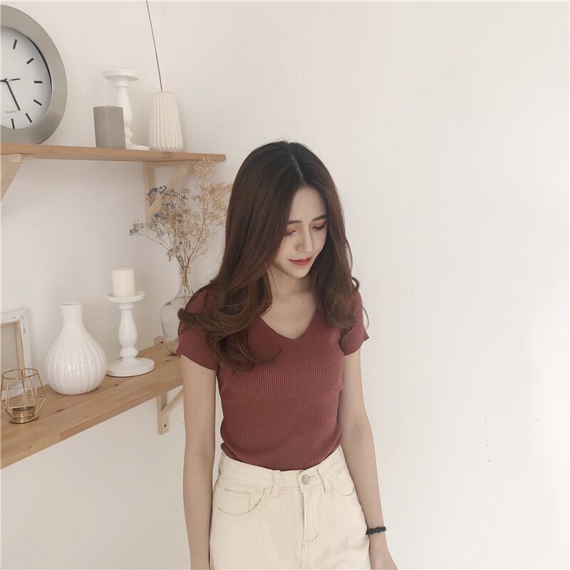トップス セーター ニット ショート ショート丈 袖あり 半袖 Vネック スリム タイト 細身 スリムフィット リブ かわいい 大人可愛い きれいめ シンプル 大人 上品 おしゃれ お洒落 大人女子 こなれ感 キュート ガーリー 無地 夏 10代 20代 30代 40代 レディース 女性用 ママ 通勤 学生 通学 デート お出かけ 女子会 休日 イベント 旅行 ホテル レストラン ショッピング 韓国 韓国系 オルチャン ファッション サイズ XS S M L XL