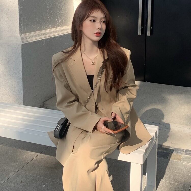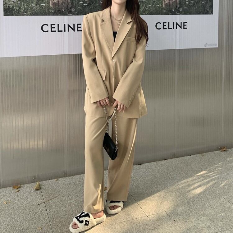セットアップ スーツ ロング丈 長袖 スーツ襟 ストレート ワイド ハイウエスト ポリエステル ツーピース かわいい 大人可愛い きれいめ シンプル カジュアル 大人 おしゃれ かっこいい 大人女子 キュート ガーリー クール セクシー 抜け感 無地 春 秋 10代 20代 30代 レディース 通勤 学生 デート お出かけ 女子会 パーティー イベント 着回し 普段使い 韓国系 ファッション コーデ スタイル モテ 体型カバー インスタ映え S M L XL ゆったり オーバーサイズ グリーン キャメル