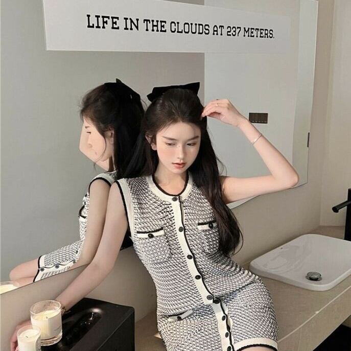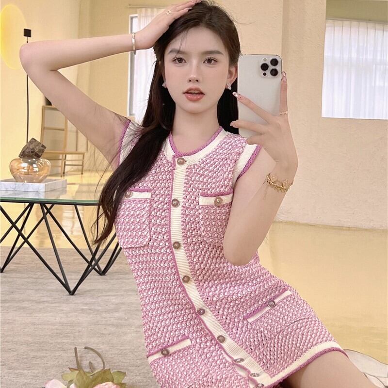 ワンピース ショート丈 ノースリーブ ラウンドネック スリム タイト ストレート シングルプレスト ポケット ハイウエスト ボタン かわいい 大人可愛い きれいめ シンプル カジュアル 大人 上品 おしゃれ 大人女子 ラブリー キュート ガーリー エレガント ツイード柄 春 夏 秋 10代 20代 30代 レディース 通勤 学生 通学 デート お出かけ 女子会 パーティー イベント 着回し 普段使い 韓国系 ファッション コーデ スタイル モテ 脚長 トレンド 流行 インスタ映え ピンク ライトグレー