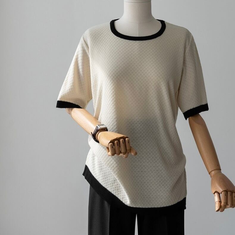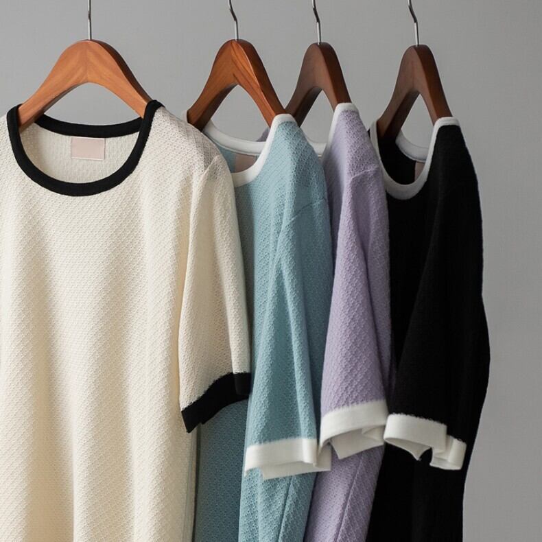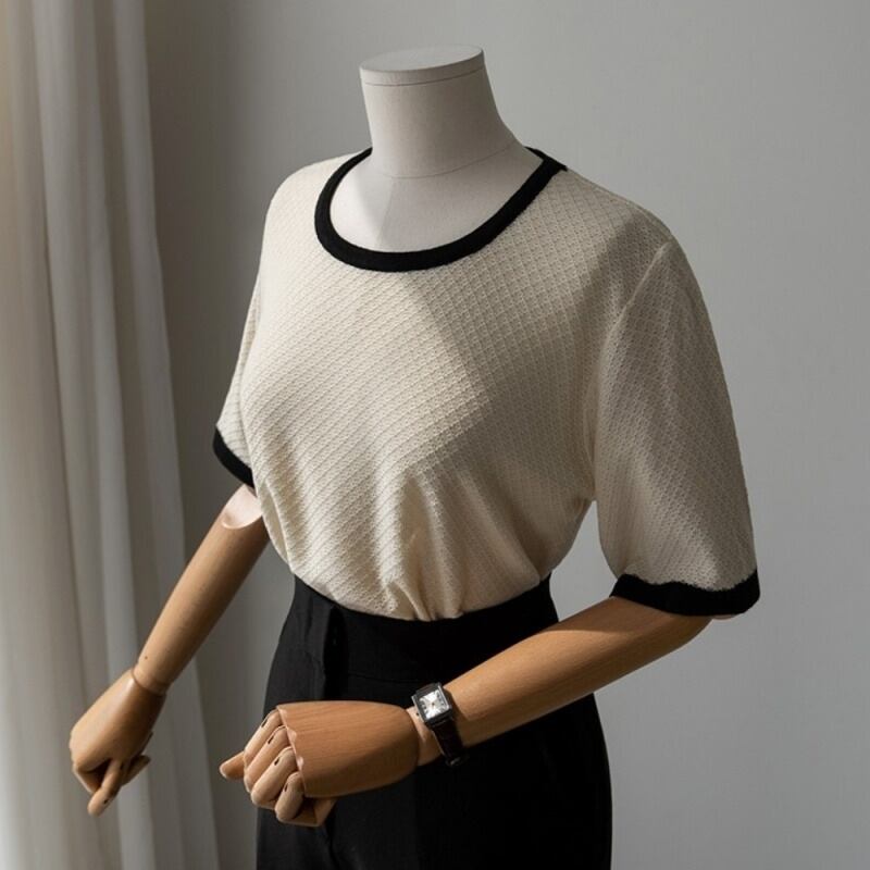 バイカラー パイピング トップス カットソー レギュラー丈 袖あり 半袖 Uネック ラウンドネック 襟なし スリム 細身 伸縮性 薄手 かわいい 大人可愛い きれいめ シンプル カジュアル 大人 上品 おしゃれ 大人女子 こなれ感 ラフ ラブリー キュート ガーリー ルーズ 無地 春 夏 10代 20代 30代 レディース 女性用 デート お出かけ 女子会 休日 着回し 普段使い 韓国 オルチャン ファッション コーデ スタイル 楽ちん モテ 重ね着 お揃い トレンド インスタ映え パステルカラー