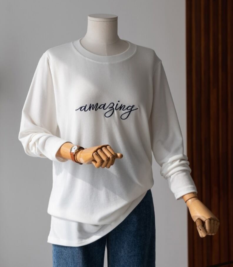 綺麗目にもカジュアルにも着られるシンプルなプリント柄Tシャツです。モノトーンカラーで合わせやすく、カジュアルだけど大人な雰囲気に。肌寒い時期にも重宝する嬉しい一着です。