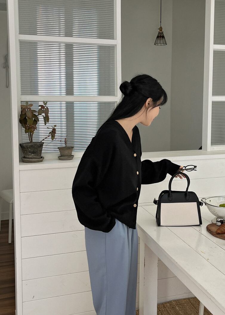 ドロップショルダーで女性らしさを演出するVネックニットカーディガン。Vネックでデコルテを美しく魅せ、上品なルックスとゆったりとした着心地が魅力。オフィスやデートなど、様々なシーンで活躍する万能アイテムです。