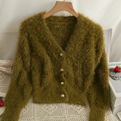 トップス カーディガン Vネックカーディガン ショート ショート丈 袖あり 長袖 Vネック ふわふわ ゴールドボタン ボタン シャギー かわいい 大人可愛い シンプル カジュアル おしゃれ お洒落 かっこいい こなれ感 ラフ メンズライク マニッシュ ボーイッシュ ラブリー キュート ガーリー とろみ感 抜け感 無地 秋 冬 クリスマス バレンタイン 10代 20代 30代 レディース 女性用 ママ 学生 通学 デート お出かけ 公園デビュー 女子会 お泊まり 休日 ホテル ガーデン レストラン