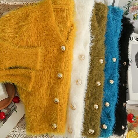 ふわふわとした質感が特徴のシャギーニットカーディガンです。