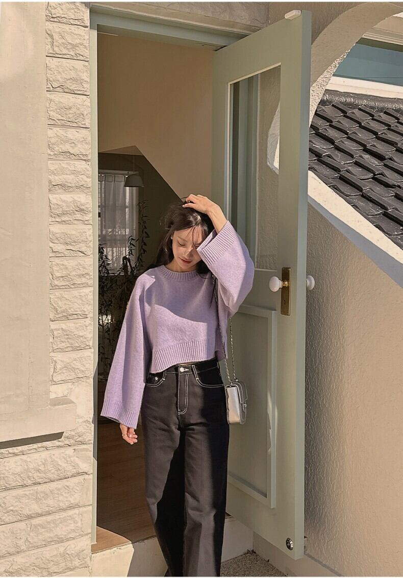 シンプルでどんなアイテムにも合わせやすい、ショート丈ニット♪