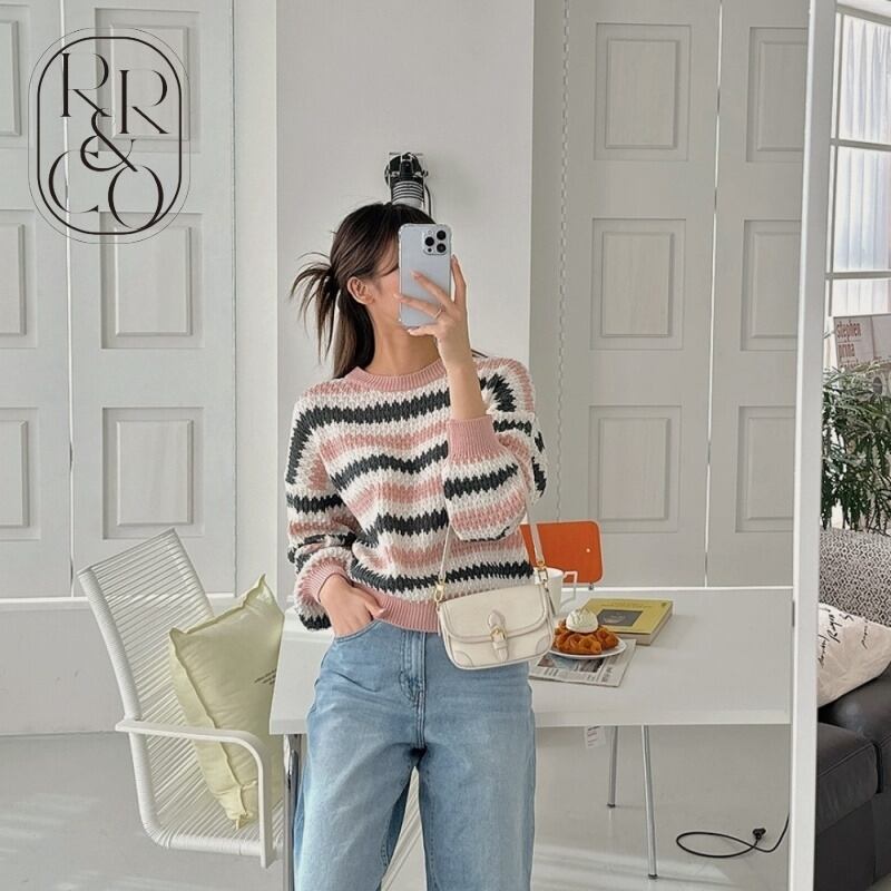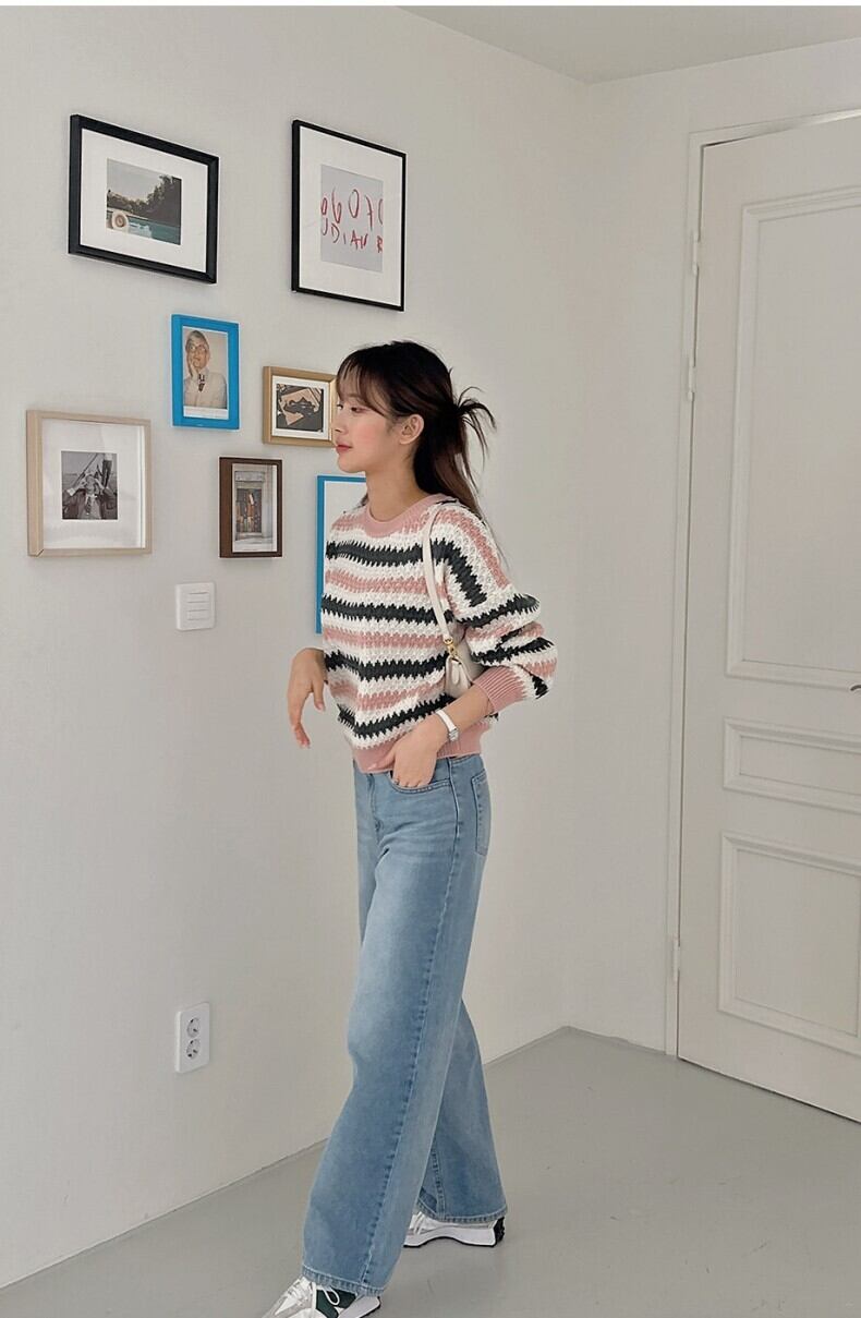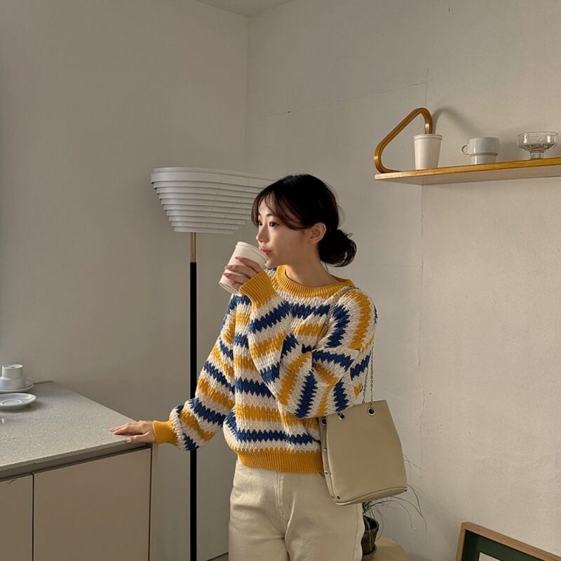 少しクセのあるカラフルボーダーデザインがオルチャンスタイルにぴったりなトップス。