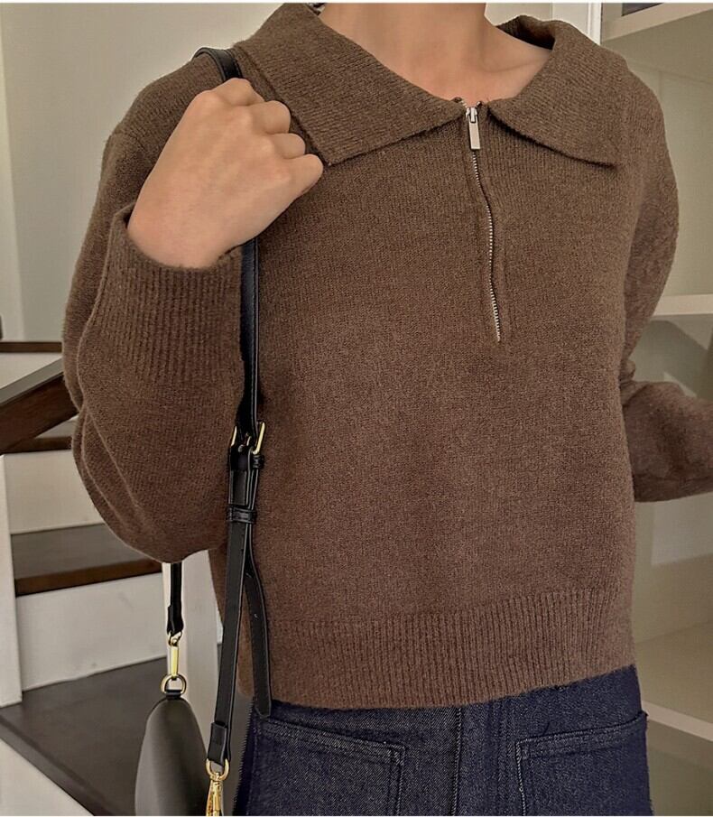 ハーフジップ 開襟 トップス ニットソー ミニ丈 ショート丈 袖あり 長袖 萌袖 襟なし ファスナー 伸縮性 ニット かわいい 大人可愛い きれいめ シンプル カジュアル 大人 上品 おしゃれ レトロ 大人女子 こなれ感 ラフ ラブリー キュート ガーリー ルーズ 個性的 クール モード系 モダン 無地 秋 冬 10代 20代 30代 レディース デート お出かけ 女子会 休日 着回し 普段使い 重ね着 お揃い 双子 韓国 オルチャン ファッション コーデ スタイル 楽ちん 暖かい トレンド モノトーン