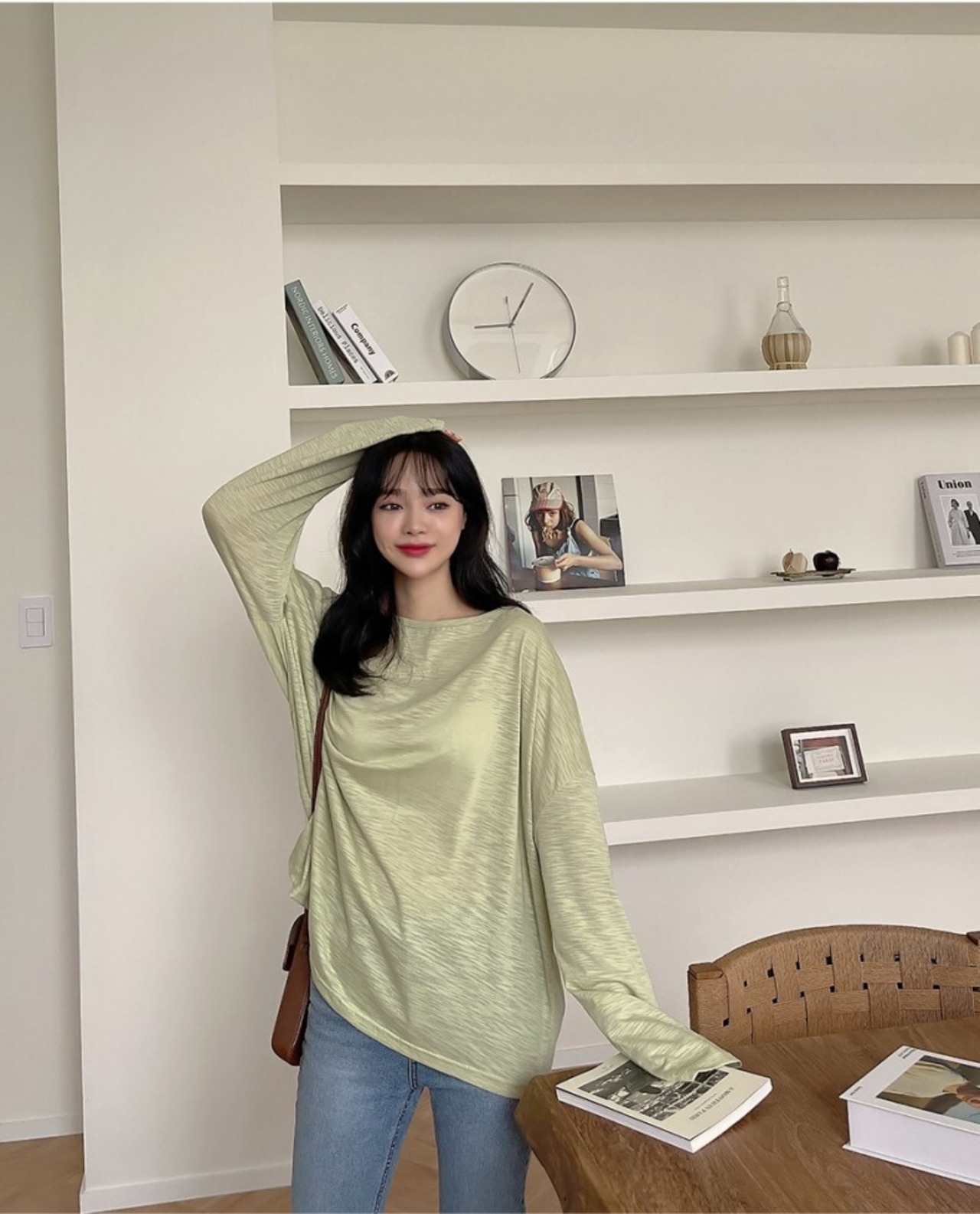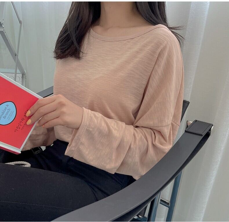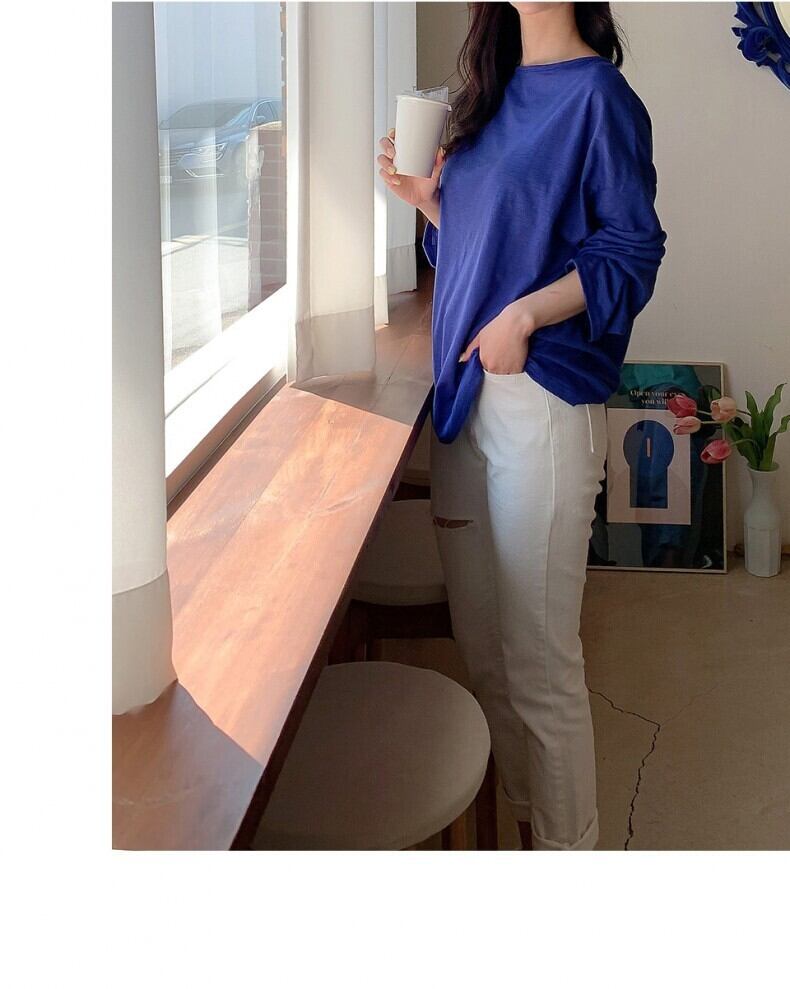 ドロップショルダーで肩が落ちたデザインが大人可愛いトップス。ボートネックは首元をスッキリ見せ、顔周りを明るく見せてくれます。体のラインを拾わないゆったりシルエットで