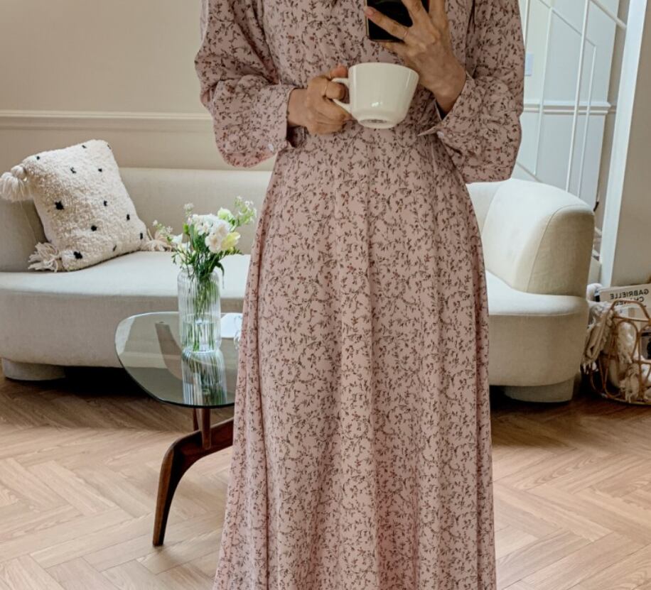 ワンピース ロング ロング丈 袖あり 長袖 パフスリーブ ラウンドネック 襟なし Aライン リボン ウエストマーク ウエストリボン バックリボン ハイウエスト 薄手 かわいい 大人可愛い きれいめ シンプル カジュアル 大人 上品 おしゃれ お洒落 大人可愛い 大人女子 こなれ感 ラフ ガーリー ルーズ 個性的 主役級 存在感 とろみ感 抜け感 柄 花柄 小花柄 フラワー 春 秋 誕生日 10代 20代 30代 40代 50代 60代 レディース 女性用 ママ マタニティ オフィス ビジネス OL