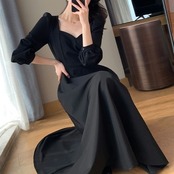 ドレス パーティードレス Aラインドレス ミディアム丈 長袖 スクエアネック Aライン フレア ハイウエスト かわいい 大人可愛い きれいめ シンプル 大人 上品 おしゃれ レトロ 大人女子 キュート ガーリー エレガント 主役級 華やか お嬢様 清楚 無地 10代 20代 30代 レディース デート パーティー イベント ホテル レストラン 韓国系 ファッション コーデ トレンド 流行 インスタ映え 秋 冬 結婚式 お呼ばれ M L XL 2XL 3XL 4XL 大きいサイズ ブラック レッド