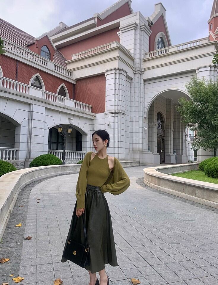 とろみ感のある生地と落ち着いた色合いがエレガントな印象を与えます!
