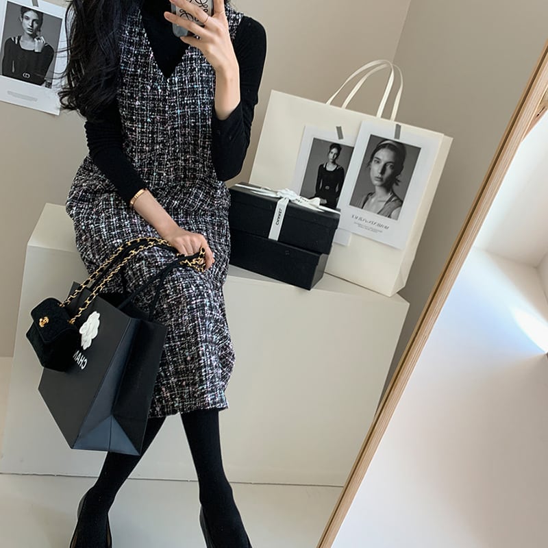 ツイードワンピース ワンピース ジャンパースカート 膝下 ミモレ丈 ロング丈 袖なし ノースリーブ Vネック 襟なし ストレート かわいい 大人可愛い きれいめ 大人 上品 おしゃれ レトロ 大人女子 こなれ感 ラブリー キュート ガーリー エレガント モダン 柄 チェック柄 格子柄 秋 冬 10代 20代 40代 50代 レディース ママ オフィス ビジネス OL 通勤 学生 通学 デート お出かけ 公園デビュー 女子会 お泊まり 休日 パーティー イベント ホテル S~5XL ブラック