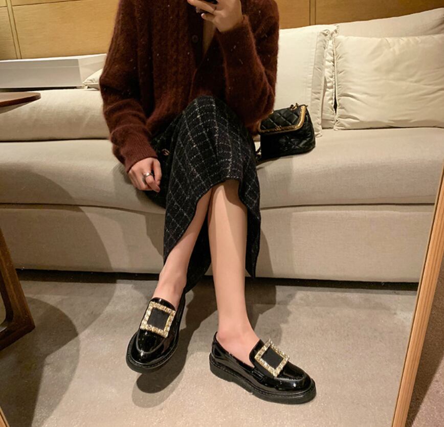 大きなスクエア型のバックルがエレガントで華やかな雰囲気のローファーです!