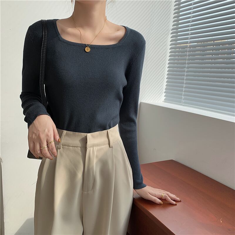 トップス ルームウェア ニットソー プルオーバー 部屋着 ミディアム丈 レギュラー丈 袖あり 長袖 スクエアネック スリム タイト 細身 ストレート ニット サマーニット 薄手 アクリル シンプル カジュアル 上品 こなれ感 ラフ とろみ感 抜け感 無地 オールシーズン 10代 20代 30代 40代 50代 60代 オフィス ビジネス OL 通勤 学生 通学 休日 ジム ヨガ 着回し 普段使い 重ね着 楽ちん 暖かい 定番 S M L ジャスト 白 ホワイト 黒 茶色 ブラウン