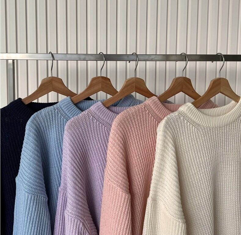 トップス ニットソー ニット セーター プルオーバー ロング丈 袖あり 長袖 ボリューム袖 ドロップショルダー ラウンドネック クルーネック 裾ワイド もこもこ モコモコ ふわふわ ニット 厚手 アクリル かわいい 大人可愛い きれいめ シンプル カジュアル ラフ ラブリー キュート ガーリー 無地 秋 冬 10代 20代 30代 40代 50代 60代 オフィス ビジネス OL 通勤 学生 通学 デート お出かけ 着回し 普段使い ゆったり ゆる ワンサイズ 青 ブルー パープル ピンク ネイビー