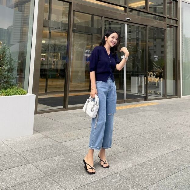 さりげないパフスリーブが大人かわいい半袖カーディガン。