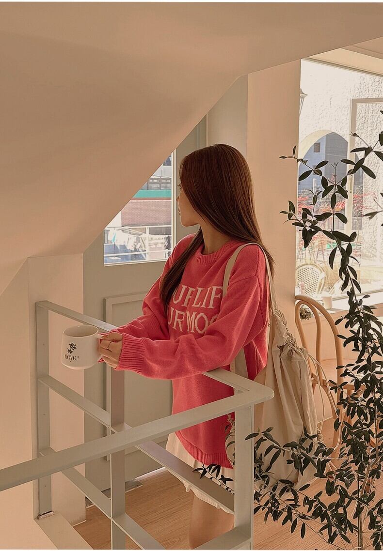 ロゴ トップス ニットソー セーター ミディアム丈 ミドル丈 袖あり 長袖 萌袖 Uネック ラウンドネック 襟なし スリット サイドスリット 伸縮性 ニット かわいい 大人可愛い きれいめ シンプル カジュアル 大人 上品 おしゃれ レトロ 大人女子 こなれ感 ラフ ラブリー キュート ガーリー ルーズ 個性的 主役級 存在感 秋 冬 10代 20代 30代 レディース 女性用 デート お出かけ 女子会 休日 着回し 普段使い 重ね着 お揃い 双子 韓国 オルチャン ファッション コーデ スタイル 楽ちん